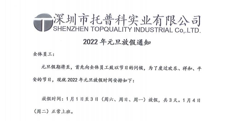 2021的尾聲即將走完,2022年即將到來,深圳托普科實業(yè)2022年元旦放假安排如下